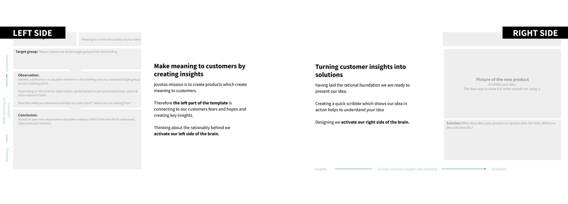 Basic idea template including leading visual, target group, observation, conclusion, and solution