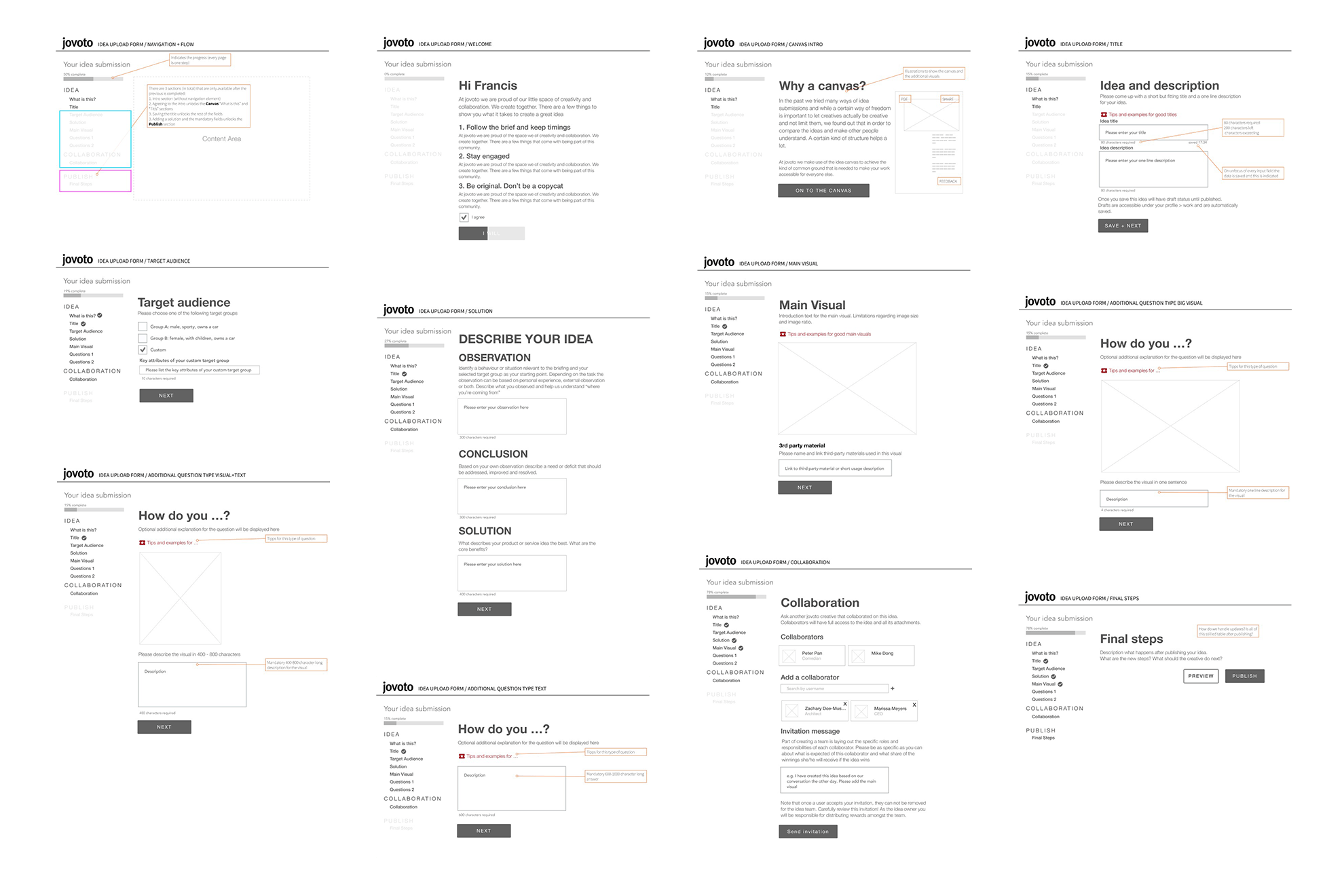 As a first step, we started capturing all the insights around jovoto’s idea submission process.