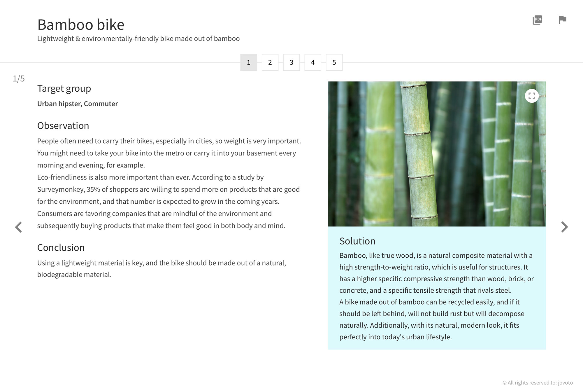 A new idea view page has a dedicated idea canvas space, where contents of each slide are displayed - this makes each idea more compact and quickly scannable.