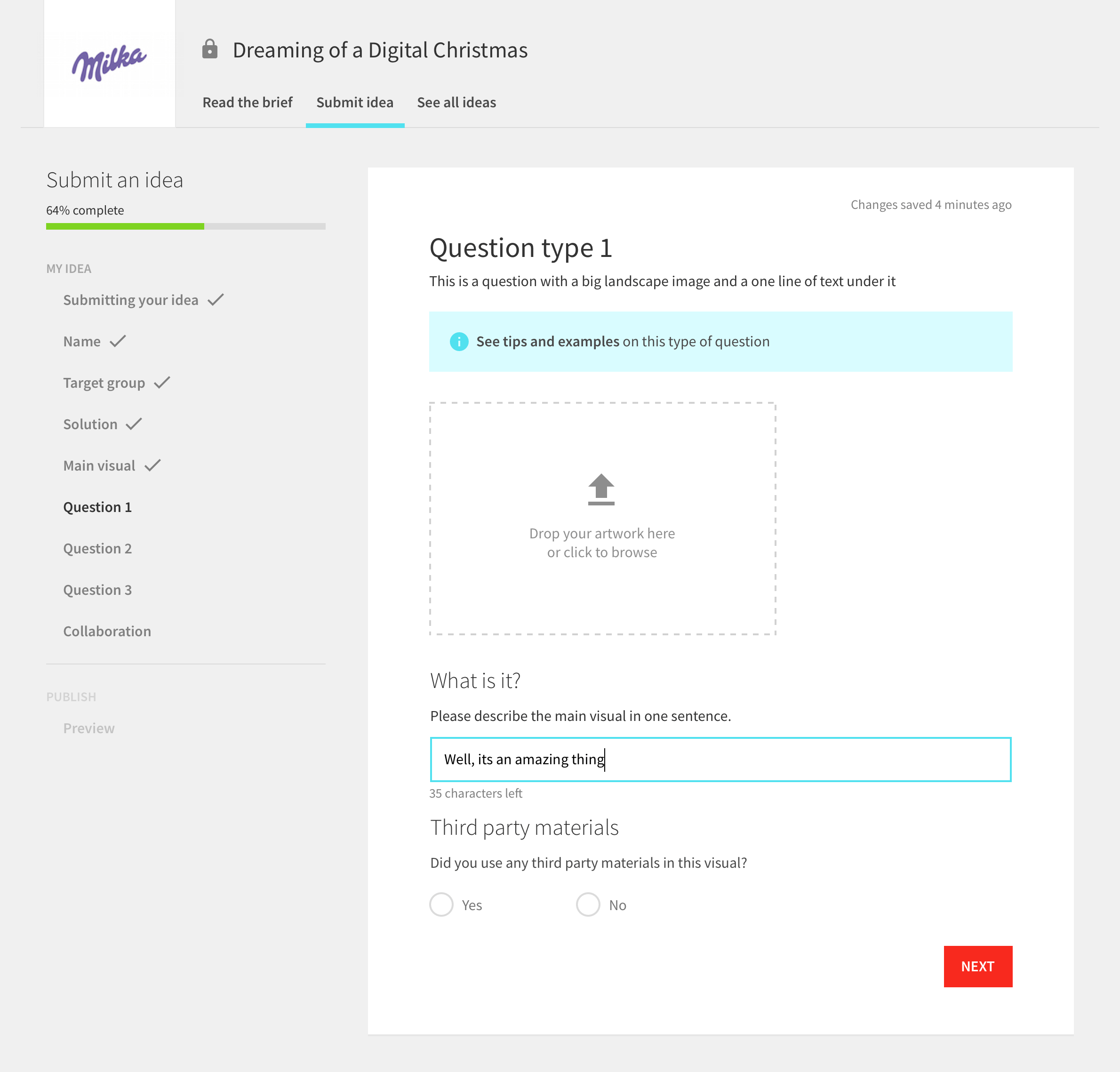 Feedback from creatives on the new idea upload and idea view pages was overwhelmingly positive, and the quality of submitted ideas has drastically improved.