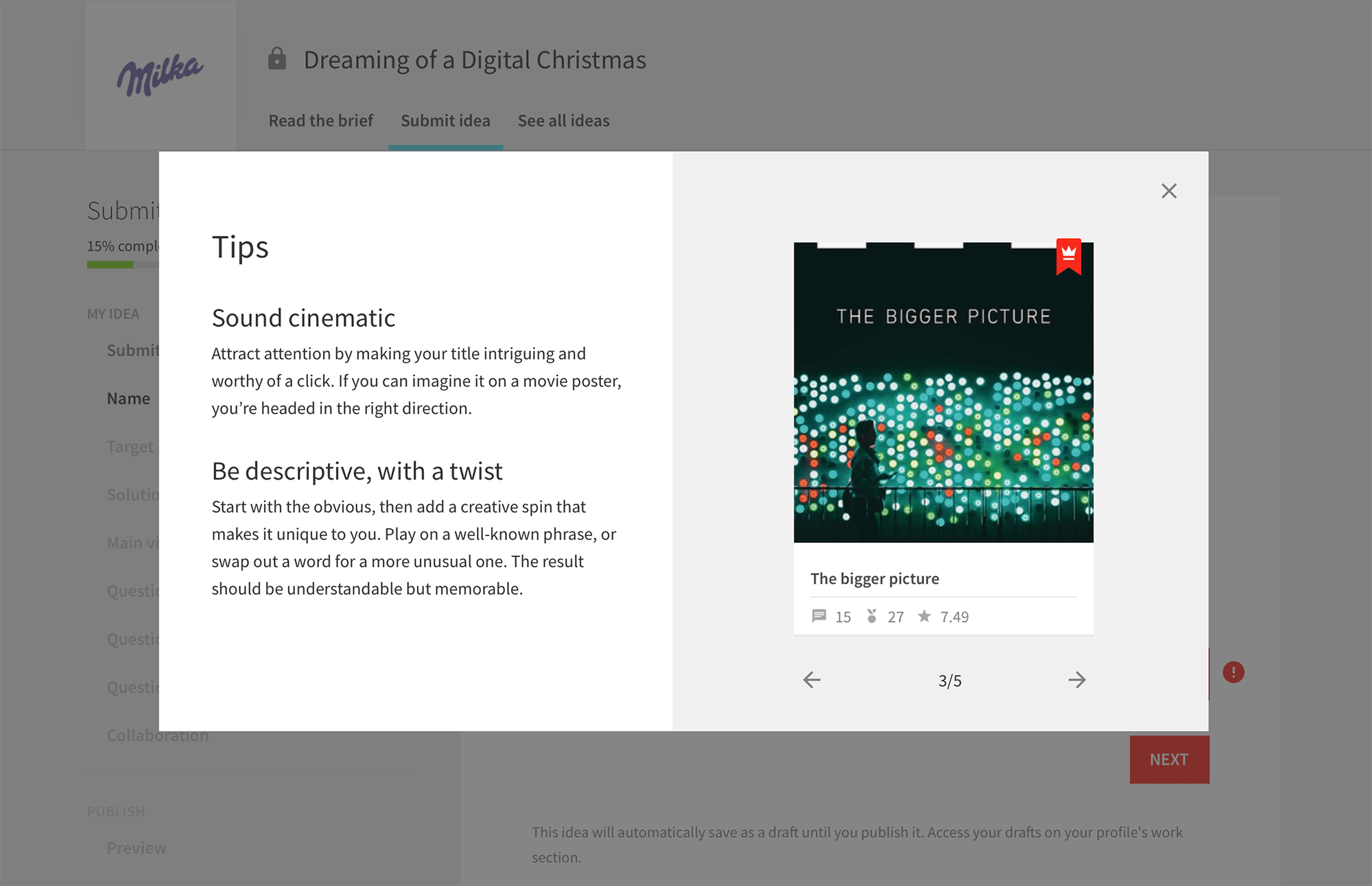We’ve added tips overlays to the upload process - guiding users and helping them to structure their ideas